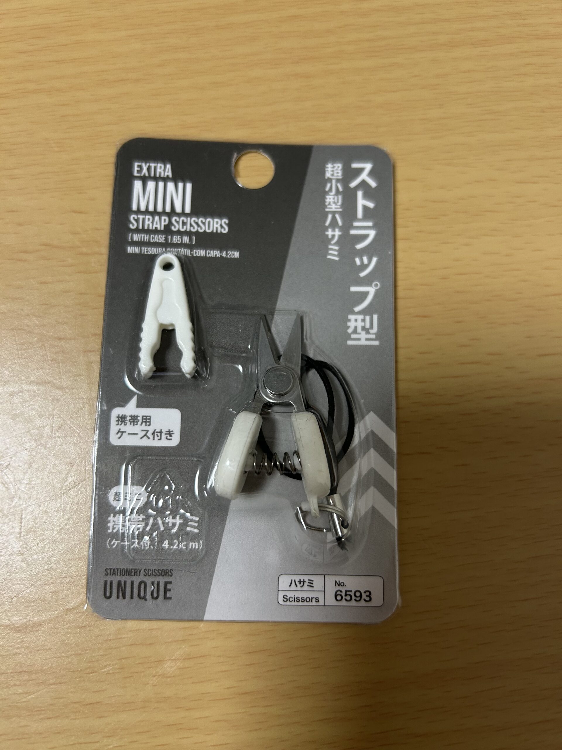 先日、別の用事でダイソーをうろついていると、この「ストラップ型超小型ハサミ」が目に入り…